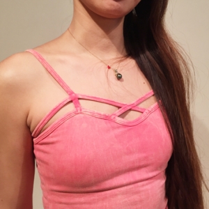 タンクトップは胸元のプリントがツボ☆ブラックであえて辛口に。ブラックのトップスは、透けないし意外とどんなボトムスにもさらっとあわせられて、一枚持っておくと便利だと思います。