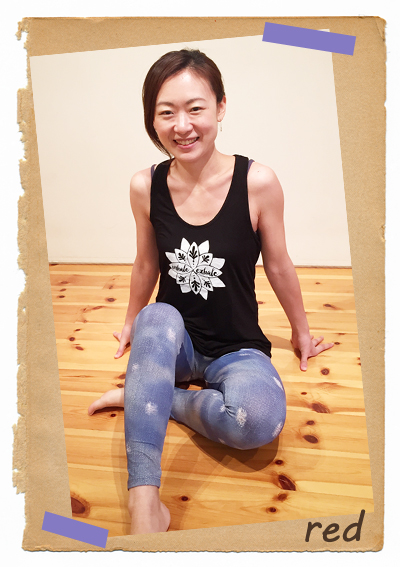 今回ウェアを着てくれたのが、ヨガウェア部門リーダーのかじー、スタジオ部門リーダーのまるこ、そして、ヨガジェネレーション企画部の私、レッドです(笑)若干、嗜好が偏っているかもしれませんが、何卒ご了承くださいm(_ _)m