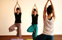 DOTカフェの2階のヨガスタジオで、本格的なシヴァナンダヨガが受けられる!