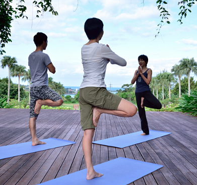 朝の新鮮な空気の中、ベーシックなヨガで心と身体を解きほぐしリフレッシュするプログラム。