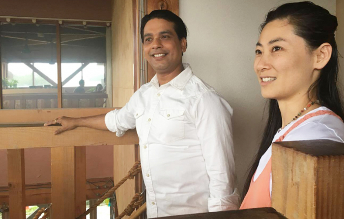 ヨガスパに着いてグルジ先生とマイさんが迎えて下さいました!