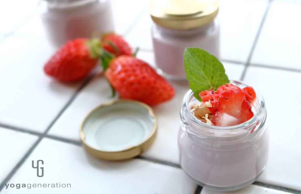 仕込む段階で、色(イチゴ)をプラスする前の素材を少し残しておき、こうして2色の層を作っても楽しいですね!
