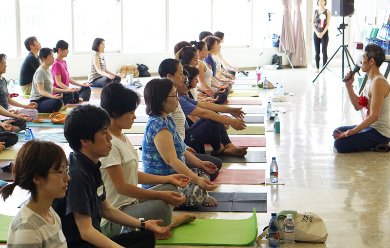その後は、全国的に大人気のヨガ・瞑想講師:中島正明先生による45分間のヨガを実践する時間がありました。「短い時間の呼吸法であっても体は変わる。」「自分の体は自分が思うよりも、可能性を秘めている」ということを存分に体感できる時間になりました。
