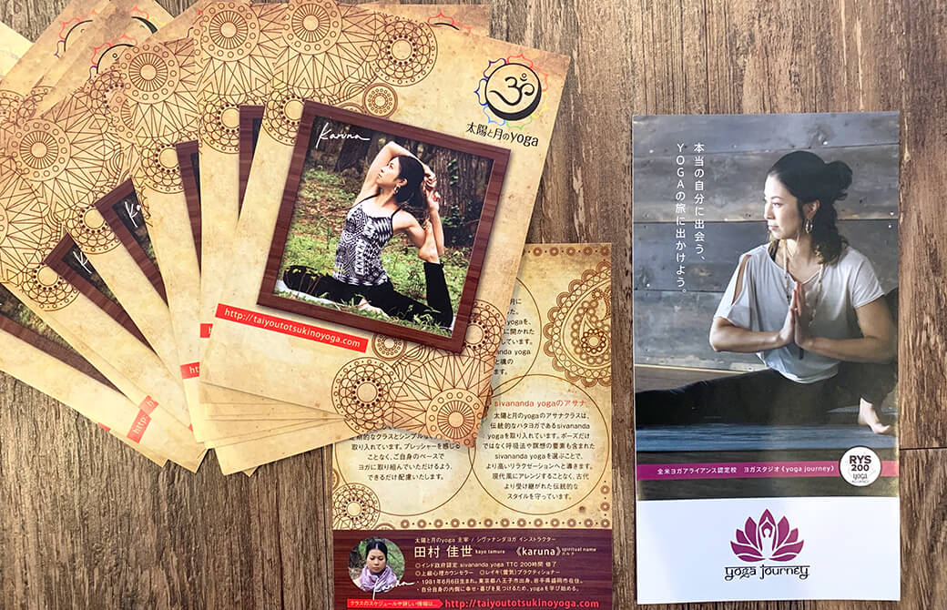 どんなに良いクラスをしたとしても人の記憶には期限があります。実際にフライヤーが物質として生徒の手元に残っていると、再びヨガを思い出すきっかけにもなりやすいです。