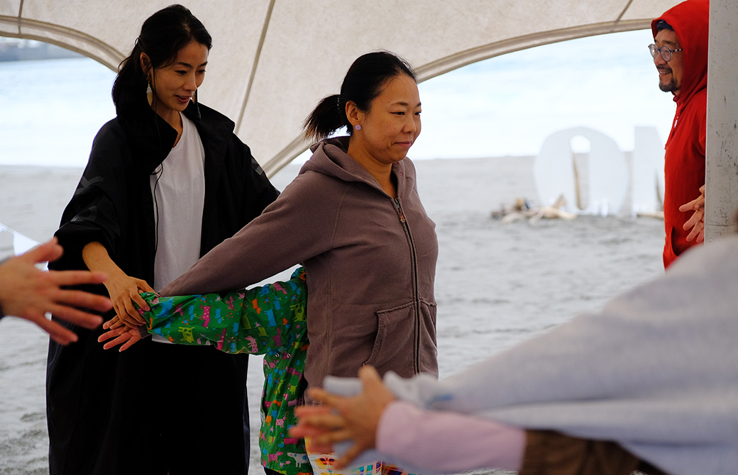 そこにmiyaさんの音が重なり、自分という意識から、私たちという意識へ。浜辺にいる全ての人が、呼吸と音で繋がっていく時間。