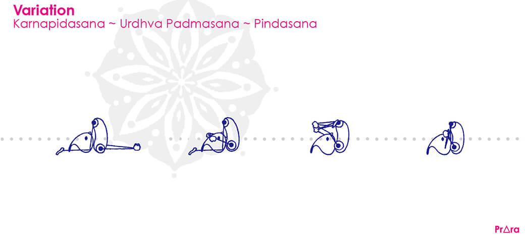 カルダピーダーサナから蓮華座を組みウルドゥバパドマーサナへ、その脚を抱え込んでピンダーサナへ…