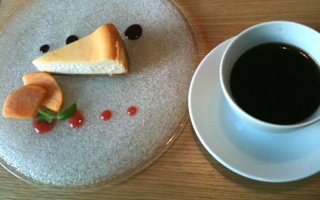 2階のレストランには、テラス席も用意されています。ランチはパスタが3種類、玄米プレートが2種類、サラダは2種類の中から選べます。野菜はもちろんオーガニック。デザートとドリンクがついて1200円です。そして、一緒に行った友人がメニューを観察しながら目を輝かせて「これは絶対食べなきゃだめ!」と注文してくれたのが、吉田牧場のチーズケーキ(600円)