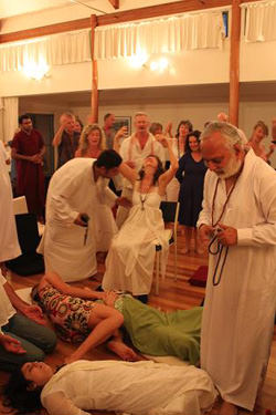 バイロンベイから車で30分位の距離にあるマルンビンビー近郊の山中にあるホールが今回の会場でした。道に迷ってしまい、少し遅れて到着すると、もう既にメディテーションフェスティバルは始まっていて、大音量でかかる生バンドの演奏に合わせて踊っている人達の姿が目に入りました。