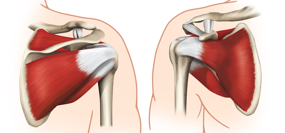 肩甲骨は背中の肩に近い位置に、逆三角形のような形で左右対称にあります。「天使の羽」のようですね。骨の中ではかなり大きく、厚みもあり、一見、背中(肋骨)にピッタリくっついているように見えます。ところが、のどの下から肩に向かって伸びている鎖骨と、肩の辺りでくっついているだけ。鎖骨とつながっている以外は宙ぶらりん状態です。