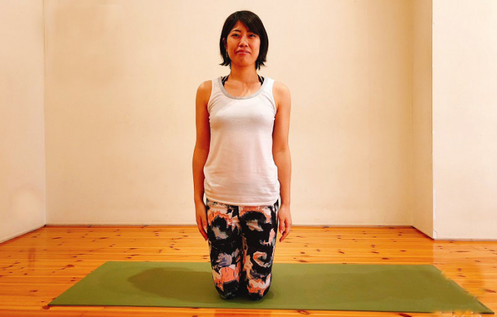 1. 両膝をそろえて立ちます。