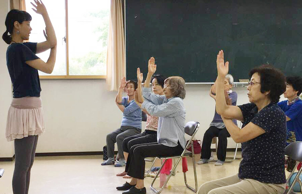 自分のおばあさまが体操でどんどん元気になっていくのを見て、ヨガインストラクターになることを決意。介護予防運動指導員としての施設での運動指導経験を元に、現在は介護施設や公民館などで高齢者を対象にヨガを指導。そして、全国でシニアにヨガを伝えるチェアヨガインストラクターを育成する指導者養成講座も開催。たくさんの介護従事者も参加しています。