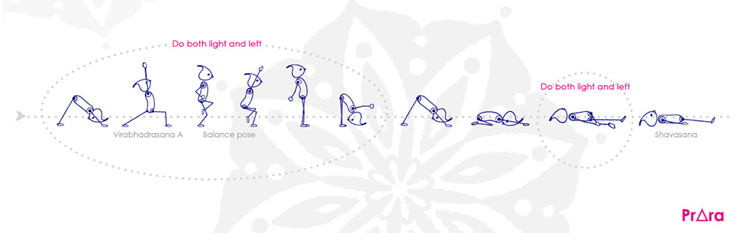 今回はもう少し、ウディヤナバンダ(腹部の引き締め)も意識しやすいウトゥカターサナを、バランス感覚を養う片脚バージョンで組み込んでみました。