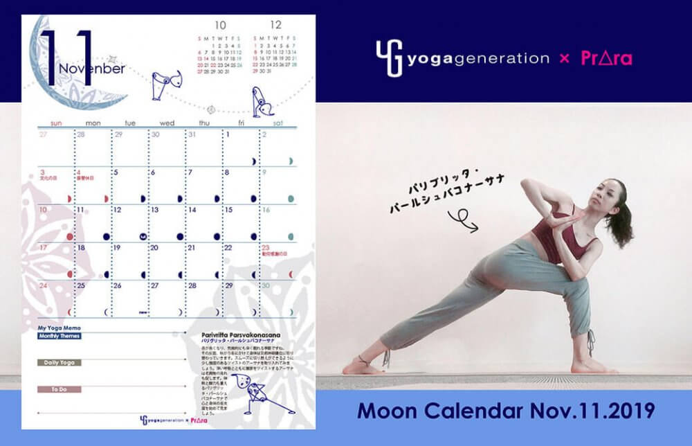 11月のカレンダー、そしておすすめアーサナのパリブリッタ・パールシュバコナーサナ。あなたの晩秋のヨガライフに是非、お役立てくださいね♪