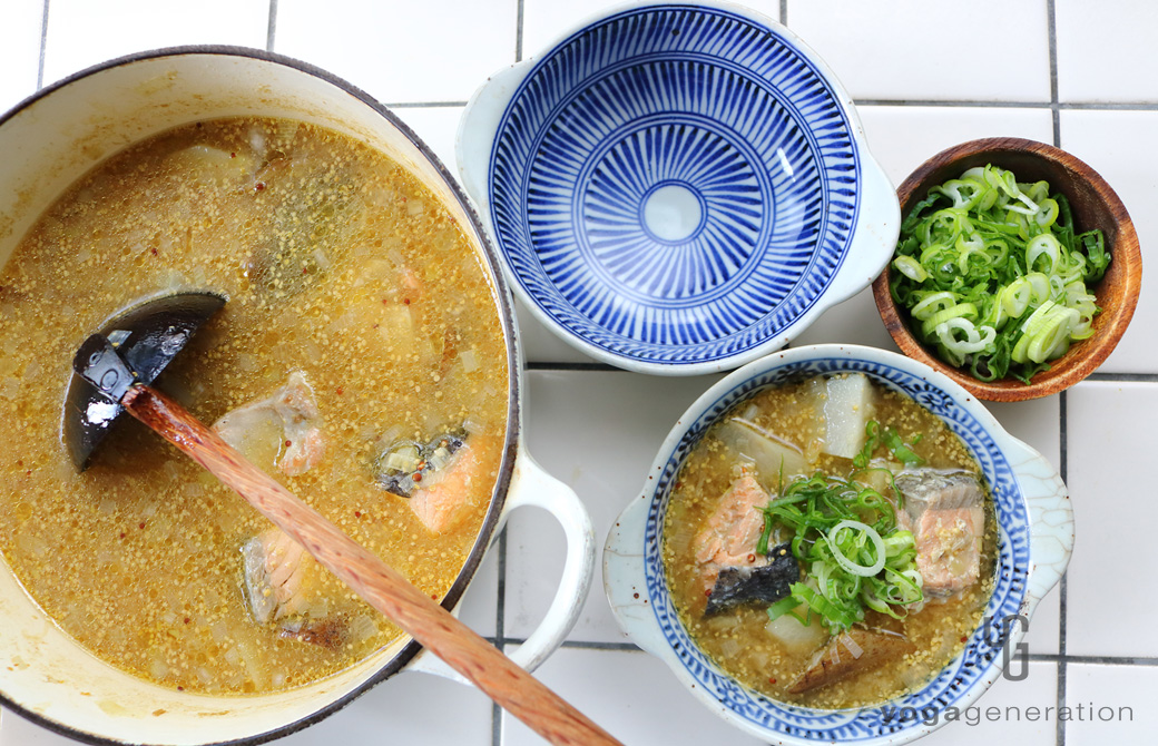 こんにちは、『ゆるベジ食』misakoです。旬のゴボウ・里芋・鮭を楽しむ今月のレシピ、今回はスープです!