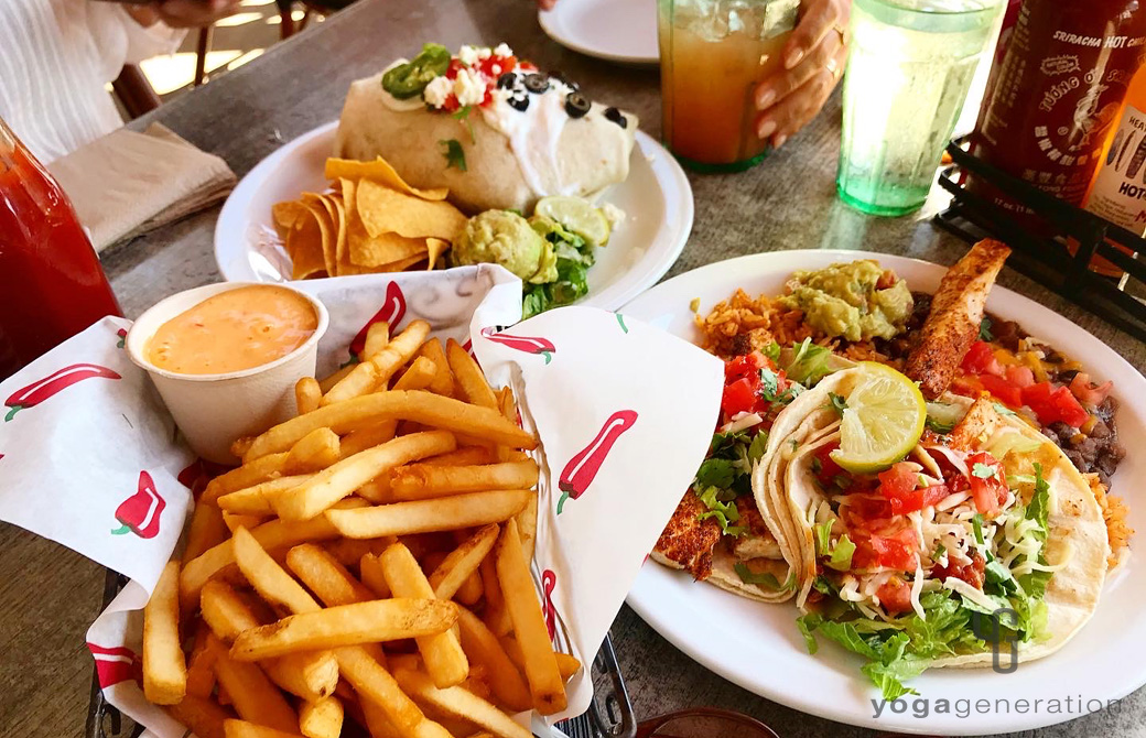外せないポテトフライに、お魚のタコス、お米たっぷりのブリトー。食べきれなかった分はテイクアウトして、この日の夜ごはんになりました。