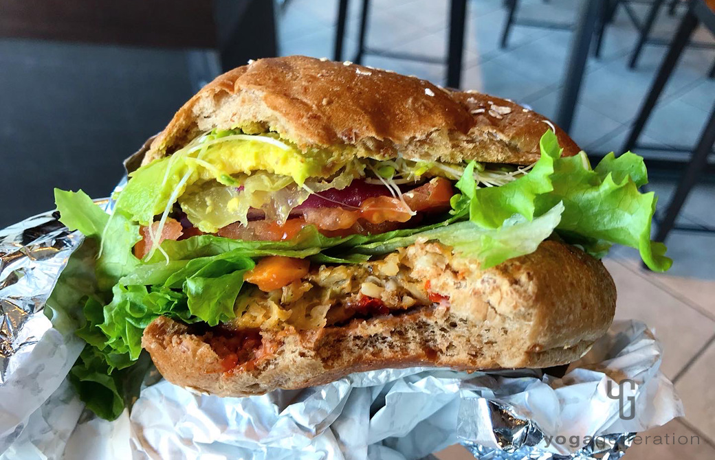 ハンバーガーのパテも、もちろんヴィーガン仕様。Down to earth(ダウントゥアース)というオーガニックやナチュラル食品、家庭用品などを主に扱ったお店で、大豆をベースにスパイシーに味付けしたパテに、トマトやスプラウトなどの山盛り野菜。そこに友人オススメのアボカドスライスをプラスしたハンバーガー。美味しかった!