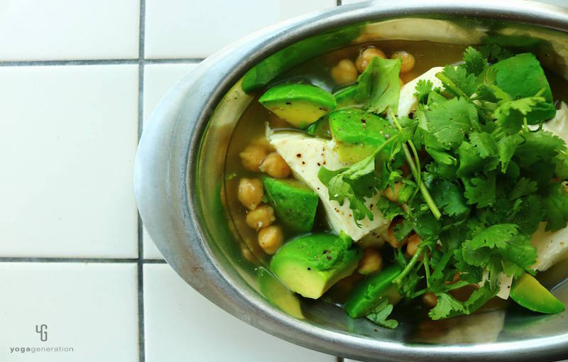 上記の定義に沿ってこのお豆腐とアボカド、ひよこ豆、スパイスを分類すると、実はこれらの食材は体を冷やす『陰』寄りの食材。そのまま頂くには、冬には向かない食材たちです。そこで『味噌』『火を入れる』という『陽』のエネルギーを注入することで全体のバランスをとっていきます。一年中楽しめるこちらのスープですが、冬場は体を温める『陽』のエネルギーを持つ味噌を多めにし、夏場は逆に体を冷やす『陰』のエネルギーを持つスパイスを多めにしましょう。
