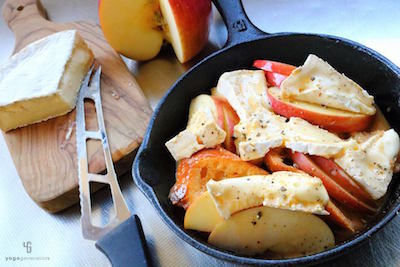 リンゴといえばカマンベール・チーズ。このチーズが作られるフランス・カマンベール地方はリンゴの産地でもあります。まさしく地産地消の組み合わせ。カマンベールは塩気が強いのが特徴なのでこっくりした甘味のメープルシロップを合わせると甘じょっぱい美味しさを楽しめます。
