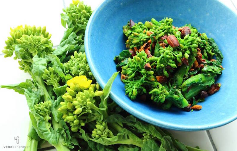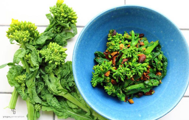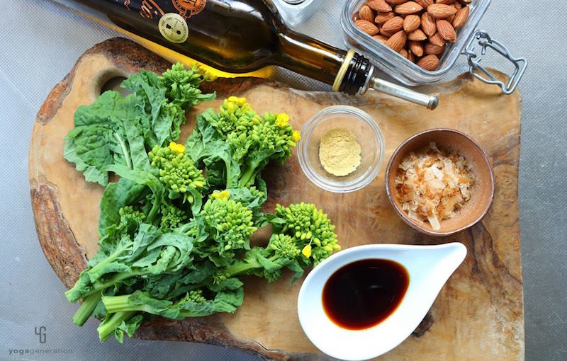 菜の花は固めに茹で、『醤油洗い』の下ごしらえをしておく。(詳しい下ごしらえの方法は前回の『菜の花玄米サラダ』のレシピをご参照ください)