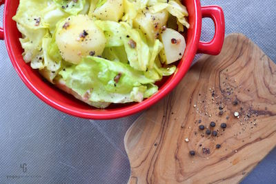 そんなキャベツに合わせるのは、ジャガイモ。ジャガイモもビタミンCやミネラルを豊富に含んでいますが、でんぷんに守られているため、熱を加えてもその栄養素が失われにくいのが特徴です。さて、そんな今が旬の2つの野菜でとびきりなレシピのご紹介です。とってもシンプルな組み合わせですが、何より美味しさのポイントは『一つ一つの手間を省かない』こと!