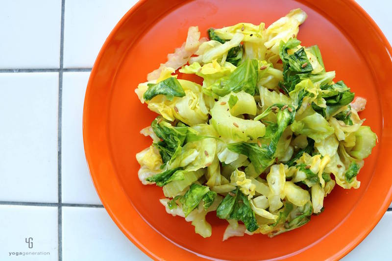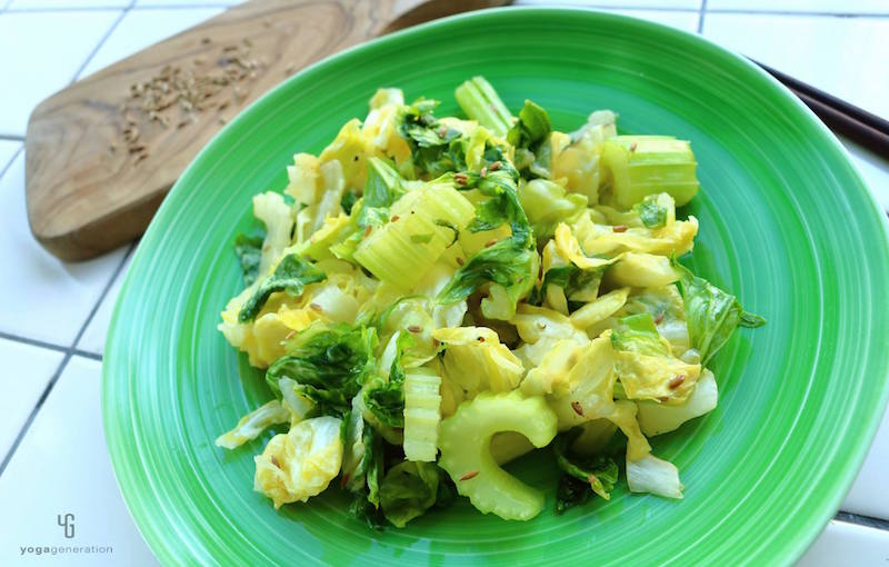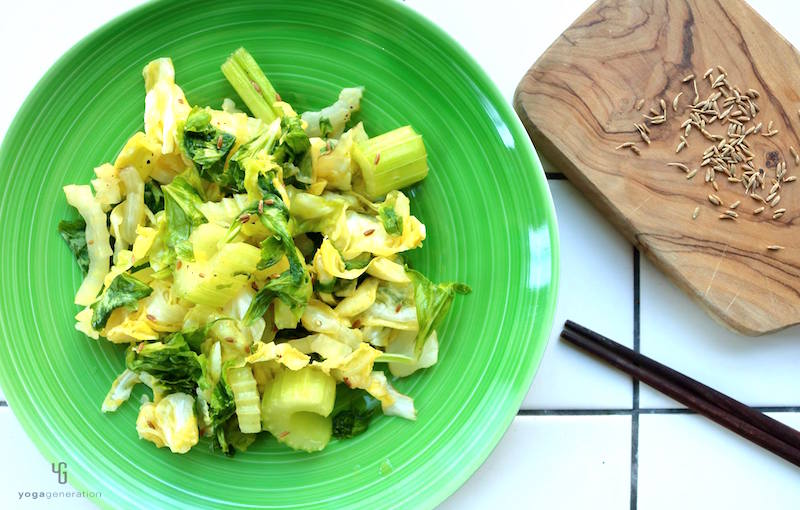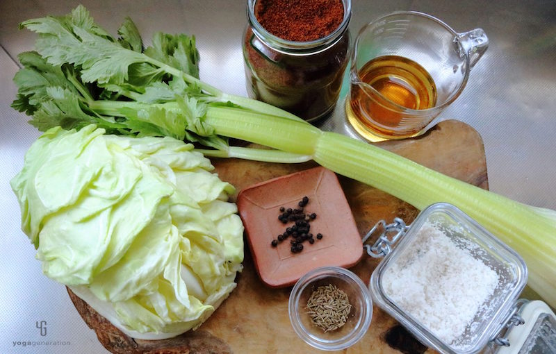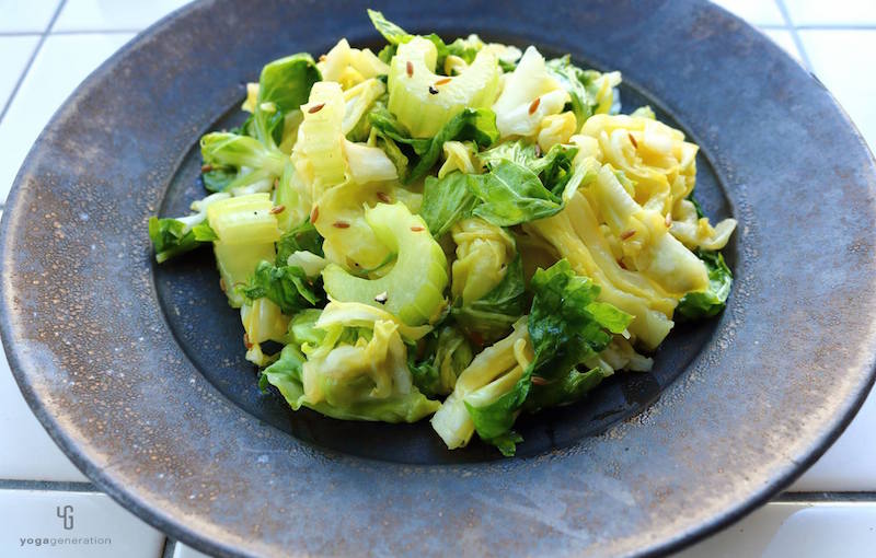 セロリは美肌効果を期待できるビタミンCが豊富な上に、キャベツと同様に食物繊維が豊富!快適な腸運動を促す、嬉しい野菜です。食欲と消化を増進させてくれるスパイス、クミンも活かして深みのある味わいに仕上げます。 シンプルなレシピだけに、前回同様やはり1つ1つの工程は丁寧に。塩は出来れば精製されていないミネラルが多い自然塩を使いましょう。味わいに大きな違いが出ますよ!