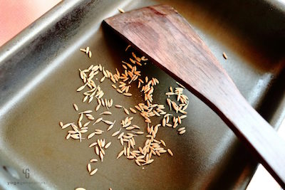 野菜に塩をまぶしている間にクミンを乾煎りし、香りを出す。 -
