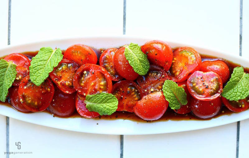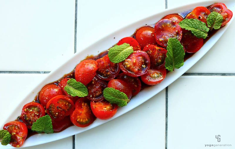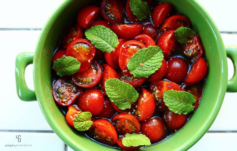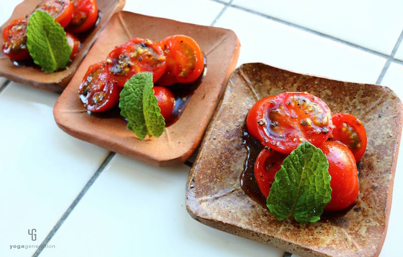 緑の器はミントとトマトの魅力を最大限に活かしてくれる色。