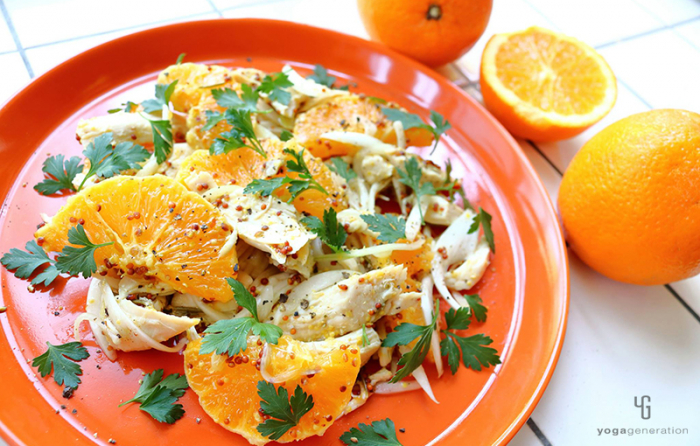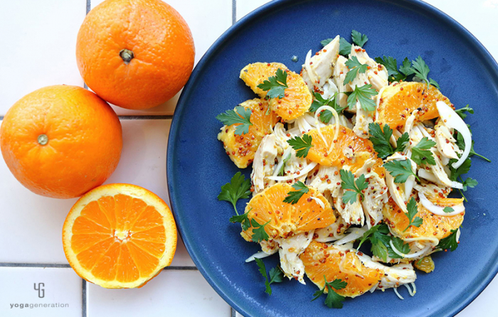 オレンジのフレッシュな甘さに、粒マスタードが効いた爽やかな味わいのこちらのサラダ。そこに胸肉の白とイタリアンパセリの緑が加わり、味わいだけでなく見た目からも初夏を楽しめる仕上がりになります!