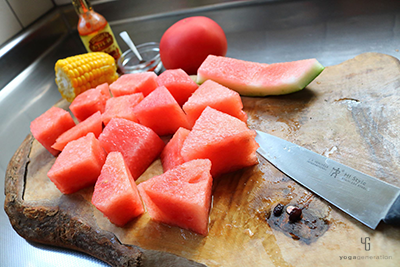 - スイカとトマトから水分が出るので、塩加減は強めに。