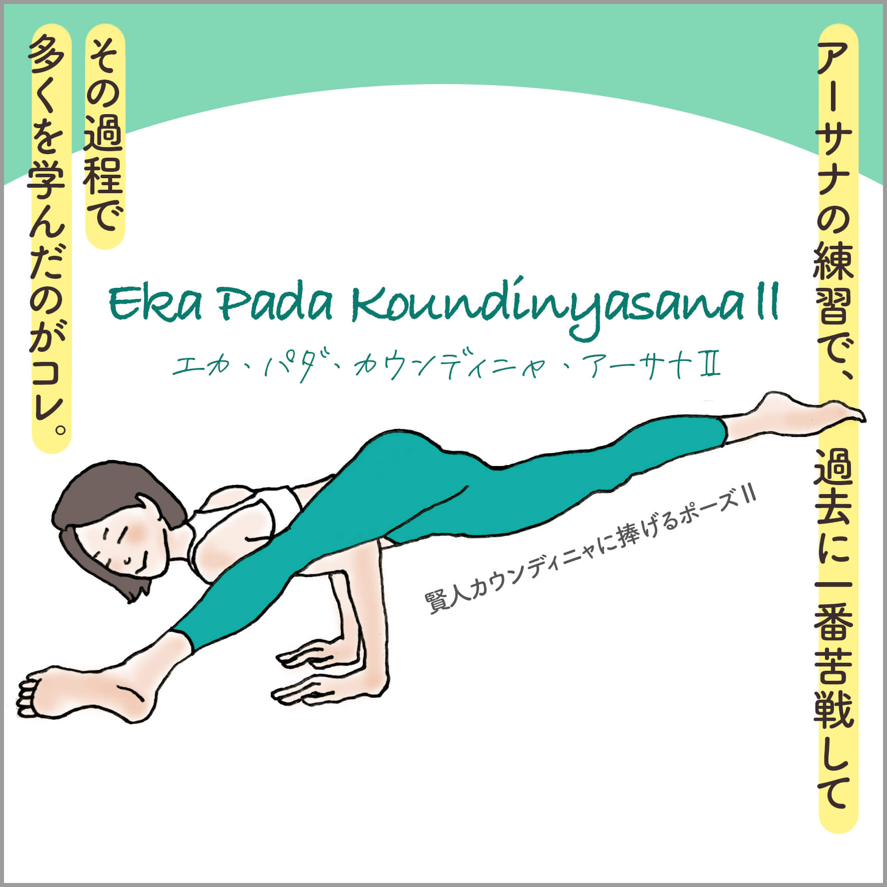 私にとっての最初に訪れた壁は、Eka Pada Koundinyasana 2(エカ・パダ・カウンディニャ・アーサナ 2)でした。