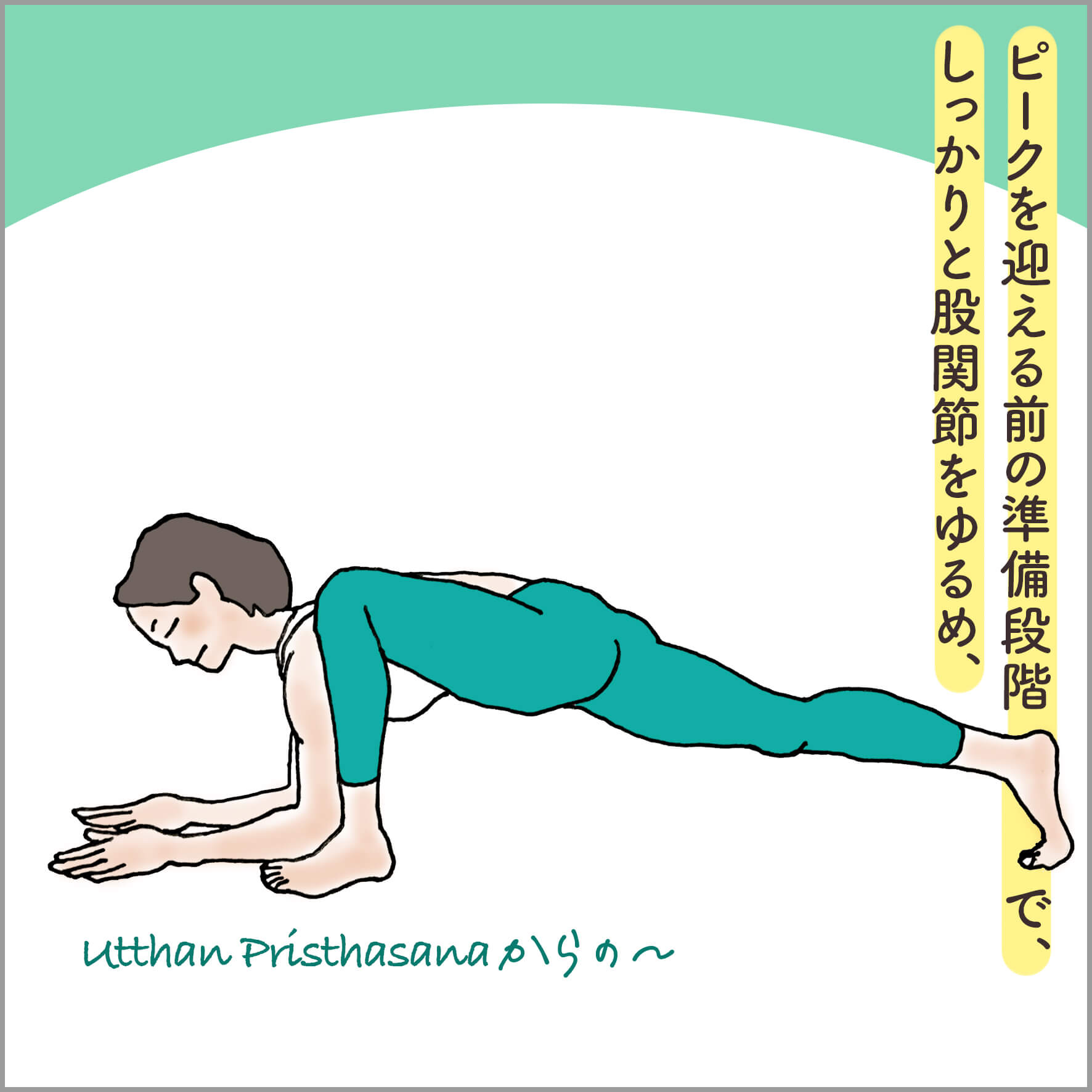 Eka Pada Koundinyasana 2の時は、自分が思っていた以上に「肘の角度」をつけ、それをキープすることをひたすら練習。するとある日突然、後ろ足がフワッと床から離れたのを覚えています。これを機に、未知の領域での体重移動を覚えて、新しい体の感覚を手にしました。