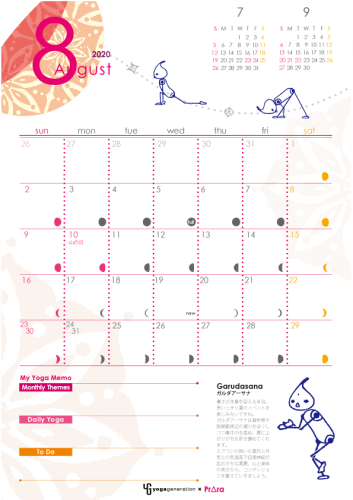 皆様こんにちは。日々暑さが増し増しですが、毎日を快適に過ごされていますか?今回のPr△ra通信は8月のカレンダー配信、そしてオススメアーサナのご紹介です。