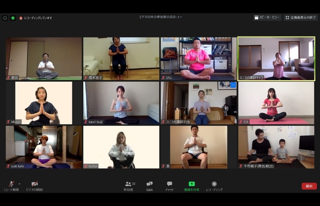 現在はオンラインでヨガを提供している。コロナ禍で、普及したオンラインヨガ。人目を気にしないでいい自宅から参加できる、オンラインならではの特性を生かし、ハンディキャップがある人も、男性も、親子でも、参加しやすいクラスが特徴だ。