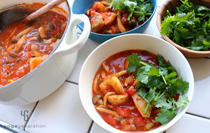 ☆を加えて弱中火にし、コトコト火を通す。味見をしながら塩コショウで味わいを整える。野菜に火が通ったらいったん火を止めて少し時間を置き、味をなじませる。