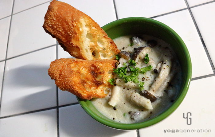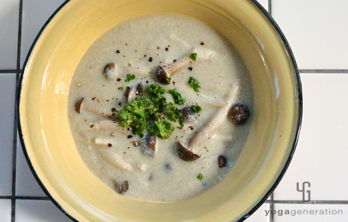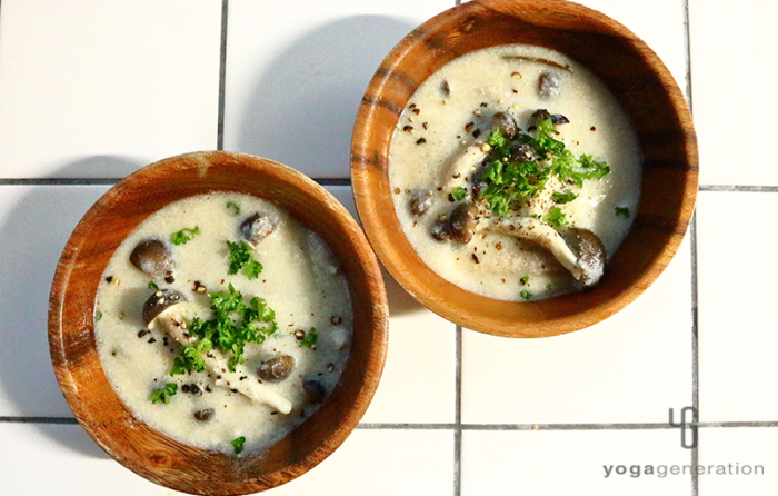 鶏肉の旨味がたっぷりのあたたかいクリーミーなスープは、冷え込む季節のご馳走です。木の器でほっこり癒し。