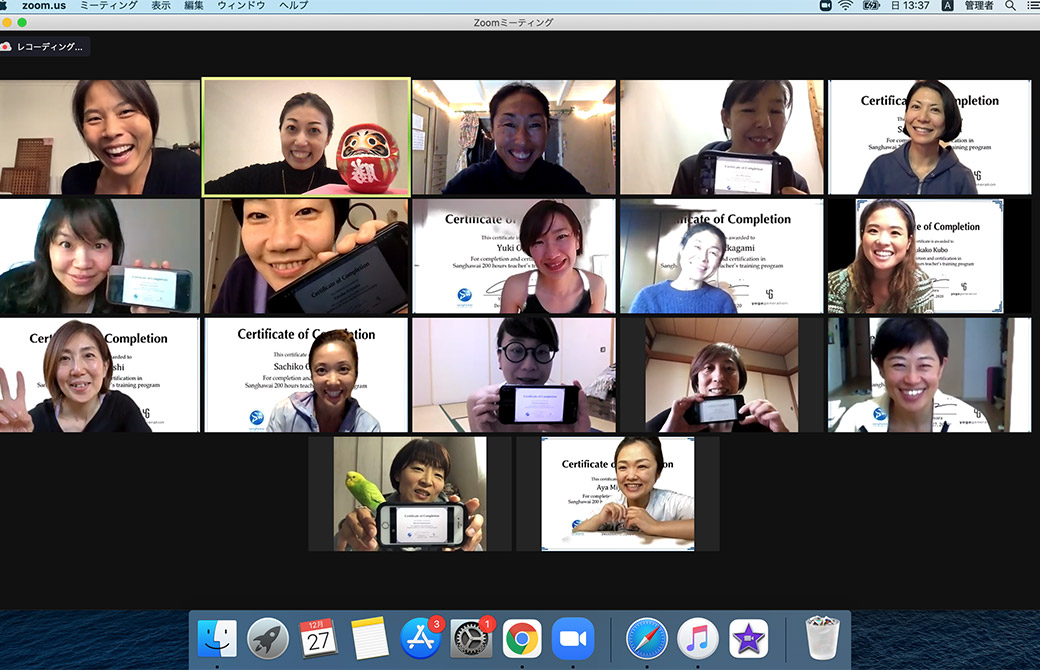 卒業は終わりじゃなく、スタート。卒業しても皆さん、ヨーコ先生のオンラインで行われているレッドクラスやマイソールクラスに定期的に来てくれ、そのご縁が途切れることはありません。皆で「コロナが明けたら」を合言葉に、ヨーコ先生の来日を楽しみにしています。