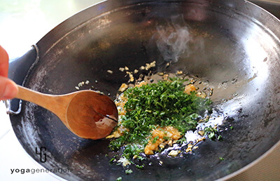鍋にごま油と1のニンニクを入れて弱火で熱する。香りが立ってきたら味噌(お好みで柚子胡椒)を加えて、味噌をほぐし馴染ませるように炒める。 -