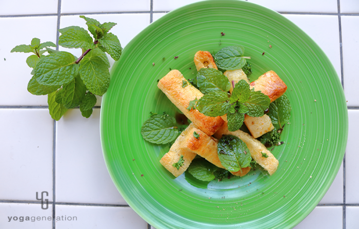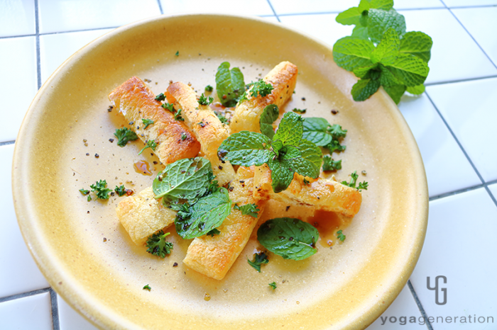素材もシンプル、作り方もシンプル。日本とイタリアの素材がマッチします!お揚げのサクサク感がクセになりそう・・・心地良く香るミントで気分もリフレッシュです。