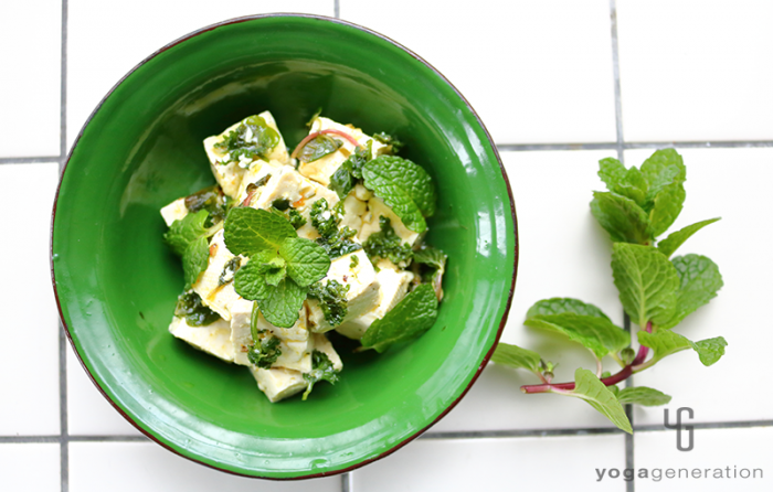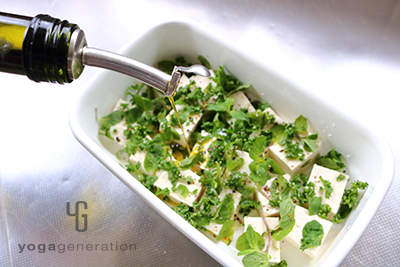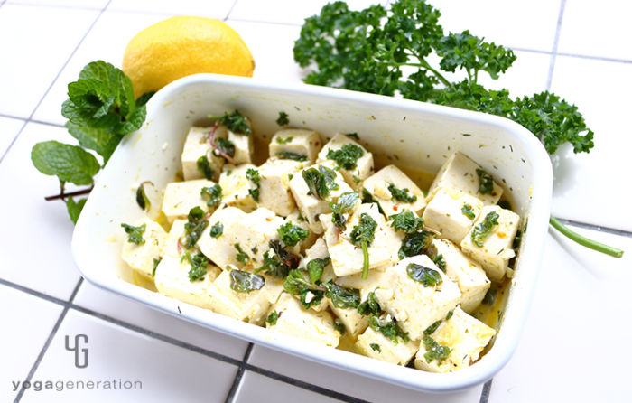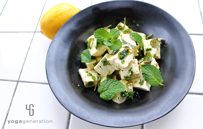 今回はお豆腐のマリネ。私のレシピにはお豆腐、厚揚げ、高野豆腐がよく登場します。満足感を得られる上にヘルシーで栄養価も高いお豆腐製品は、日本が誇るスーパーフード。そんなお豆腐に、爽やかなハーブをマッチングさせたマリネサラダのご紹介です。塩味を強めで作れば、食べるドレッシングにもなりますよ。