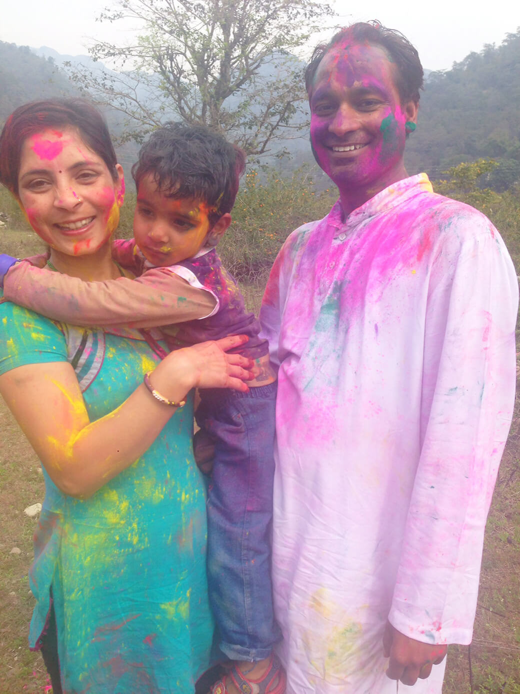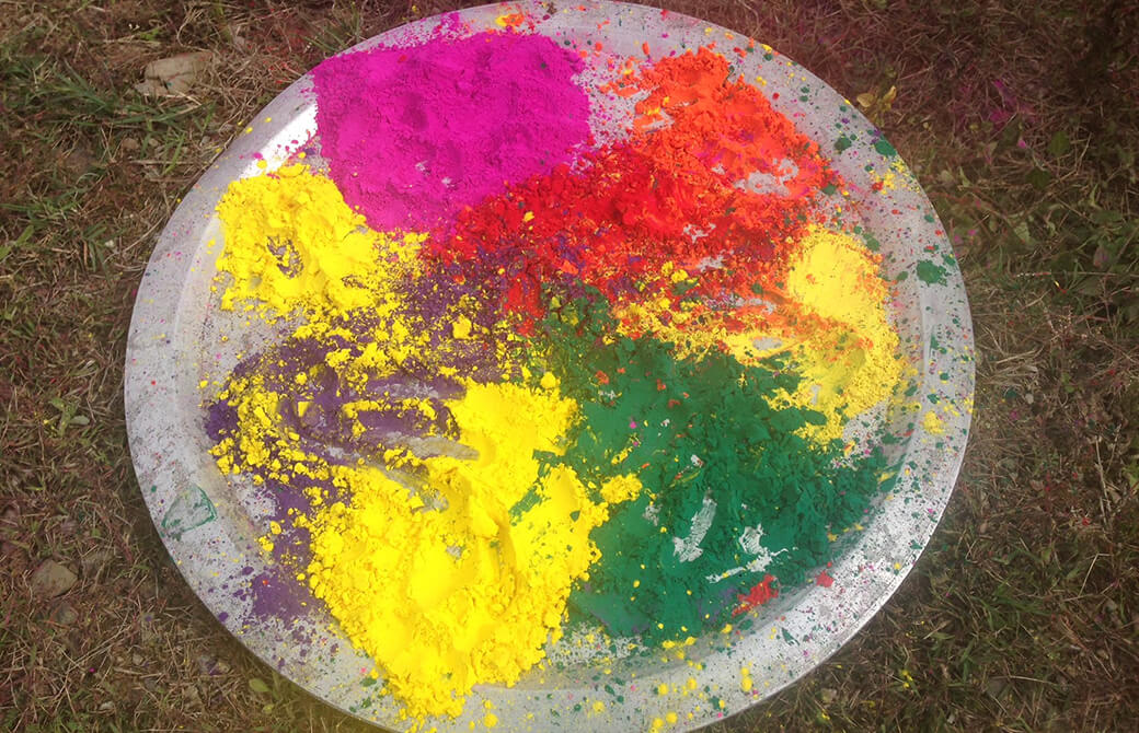 最初は親しい人、とくに家族同士でお互いの頬や額にうやうやしく色を塗ります。しかし、だんだんと顔中がカラフルになってくると、少しずつ激しさが増して髪の毛や身体全体に乱暴に色の粉をかけ合うようになります。