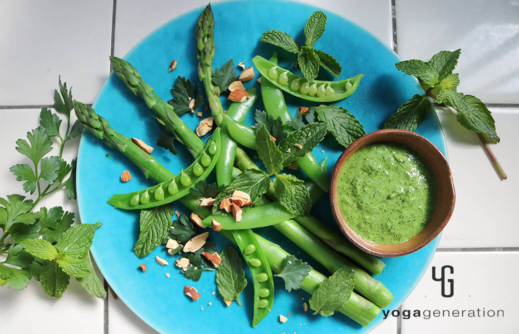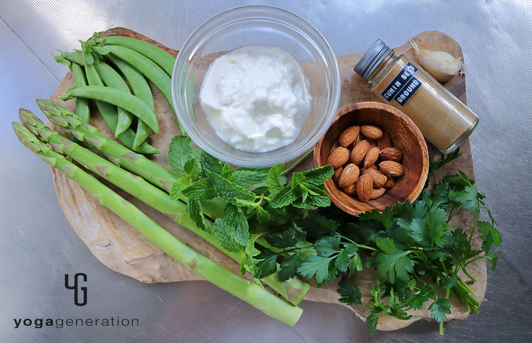 - スパイシーヨーグルトソースは味見をしながら塩味を調節してみてください。ソースの緑色や味わいも加えるハーブの量で楽しんでみてください。ちなみに写真の色合いは、倍量の2つかみほど加えています。