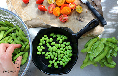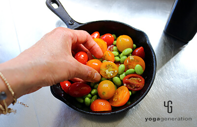 焼き上がった時の食欲をそそる香り、そしてグツグツと聞こえる音。。。五感が刺激される幸せな時間です。クリスピーな枝豆とジュワッとトマトはもちろん、皮の中で蒸し焼きされたホクホクなニンニクもたまりません!