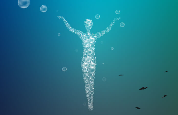 人魚のお姫さまは、そのものたちと同じように、自分のからだも軽くなって、あわの中からぬけ出て、だんだん上へ上へとのぼっていくのを感じました。