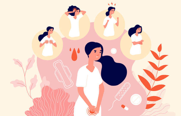 PMS(月経前症候群)とは、月経前症状とも呼ばれる心理的および生理学的な変化で、月経周期の6〜12日前に始まり、月経の開始後2〜4日間続く場合があります。