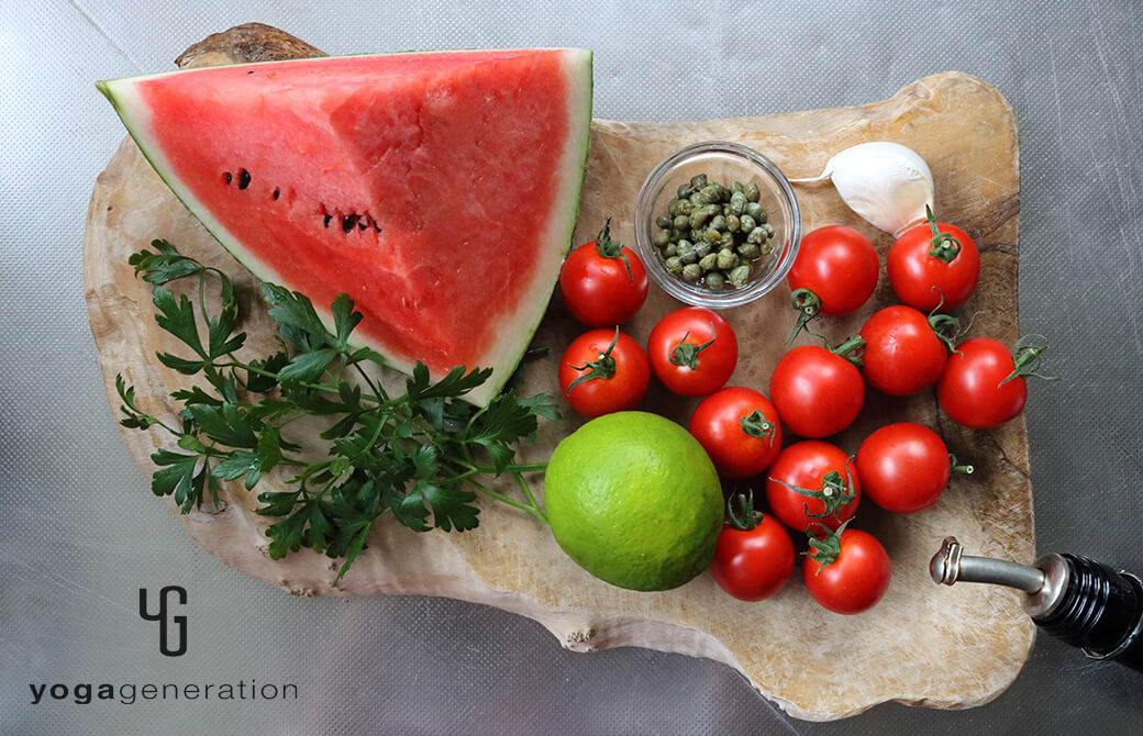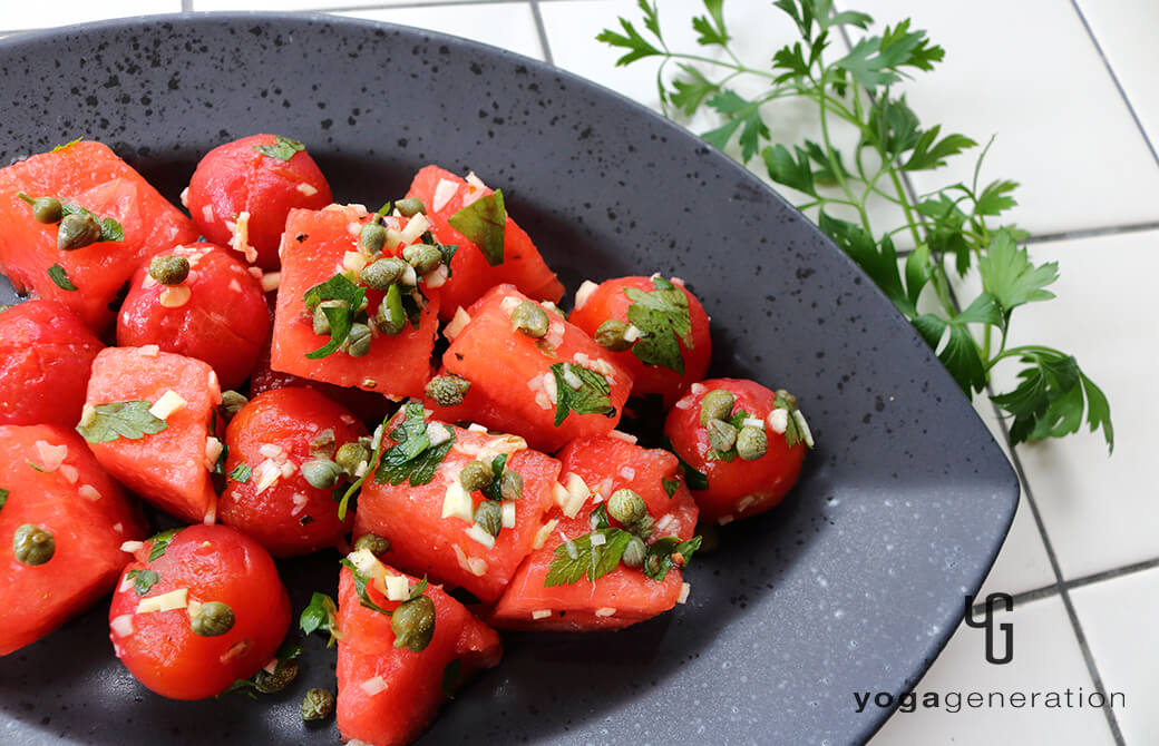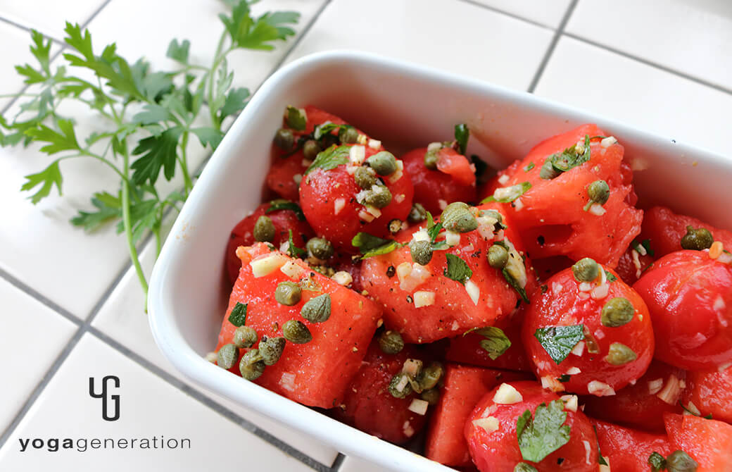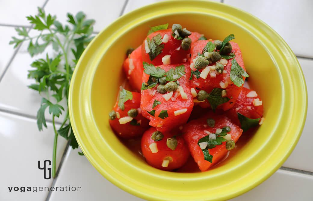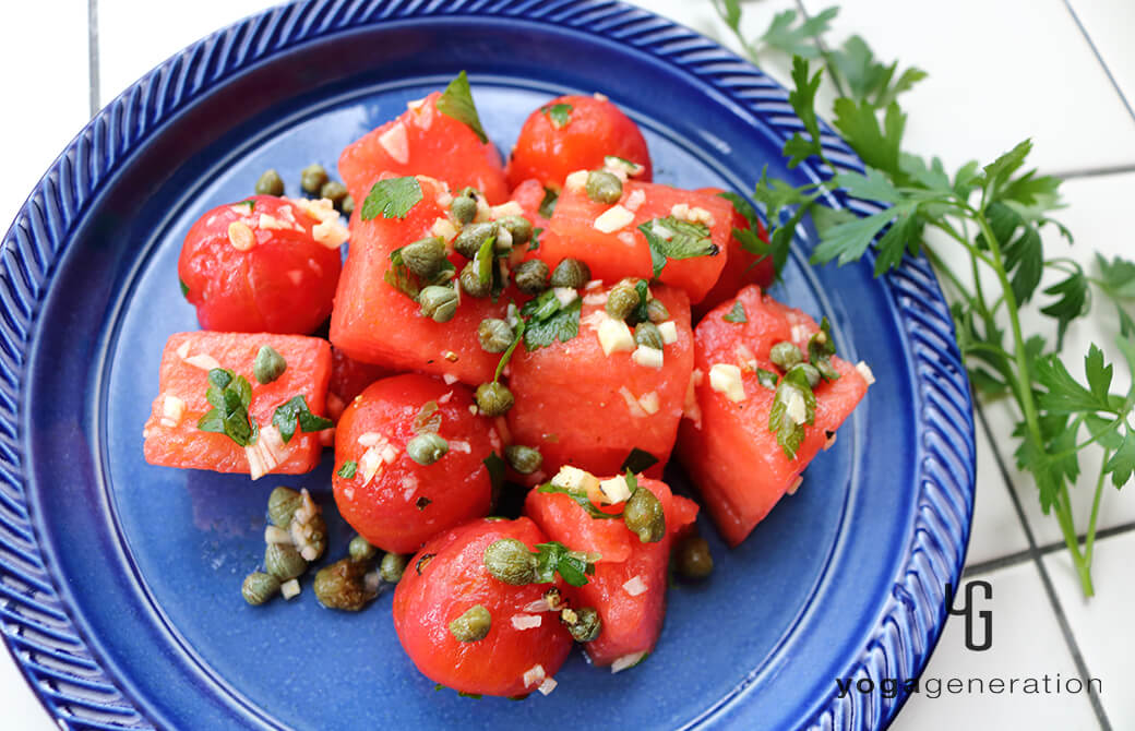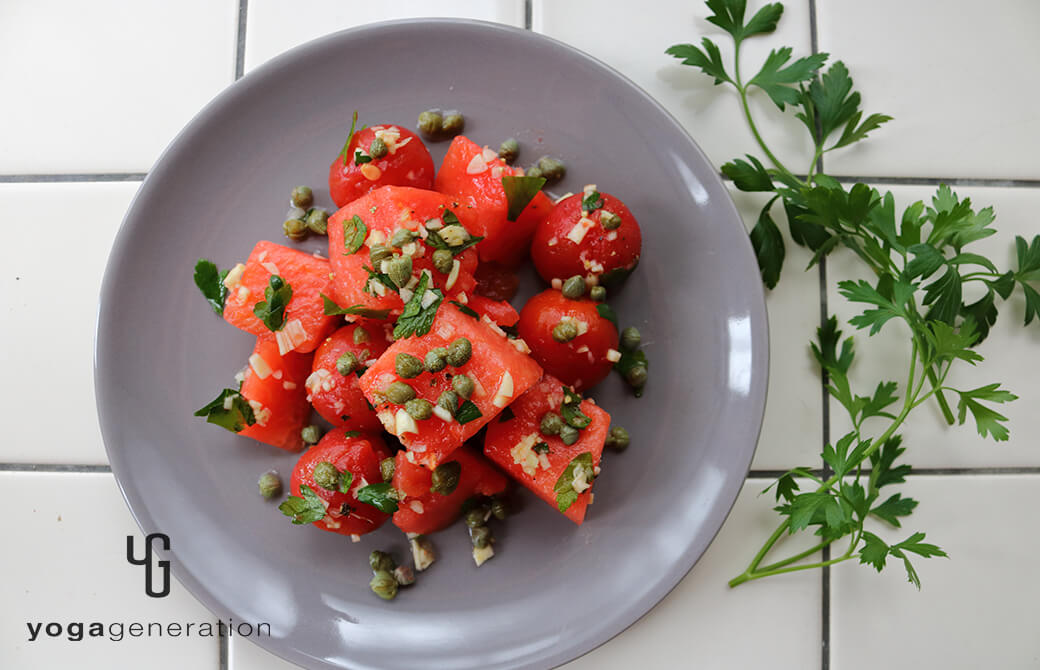 スタミナたっぷり!スイカとトマトのガーリック・ケイパー・サラダ