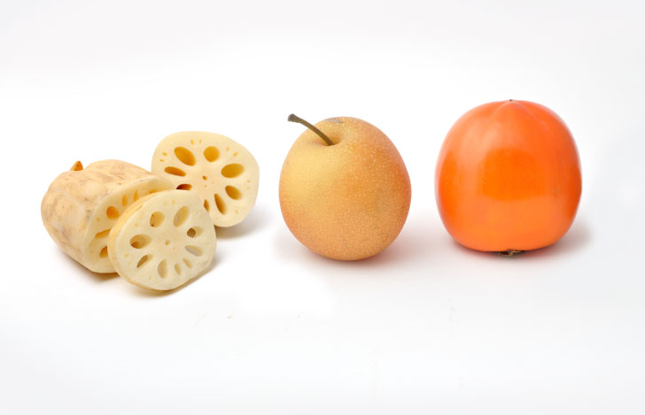熱を清め、『肺』を潤す食材、蓮根、松の実、白ごま、黒ごま、柿、梨、豆腐、貝類を食べることがおすすめです。
