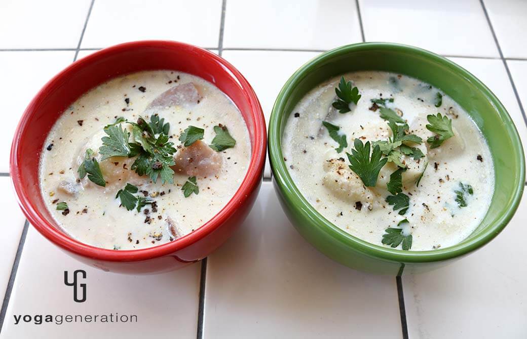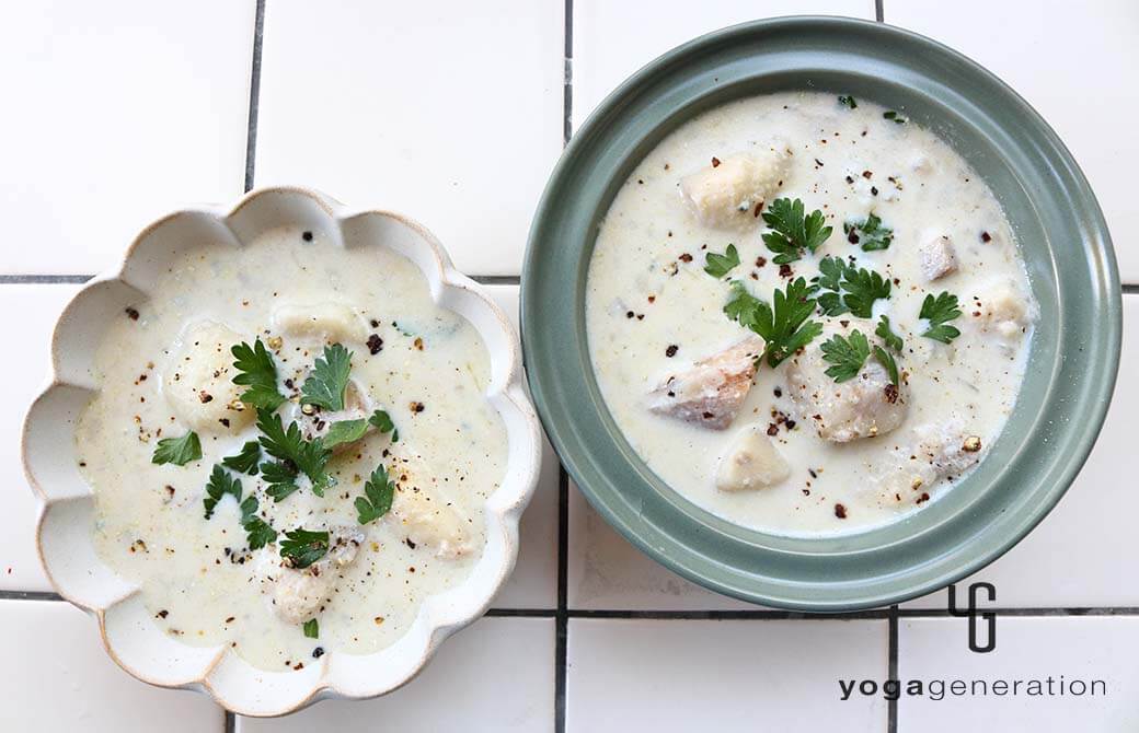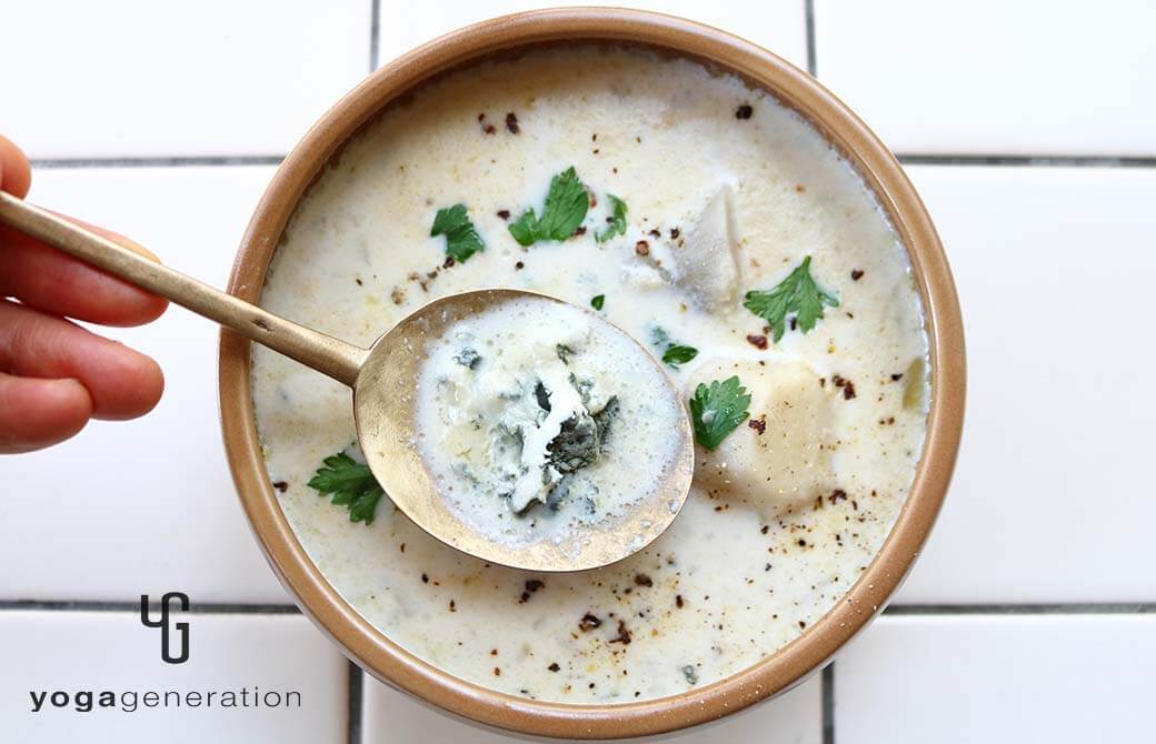 味わいに深みを!レンコンとサトイモのブルーチーズ・スープ