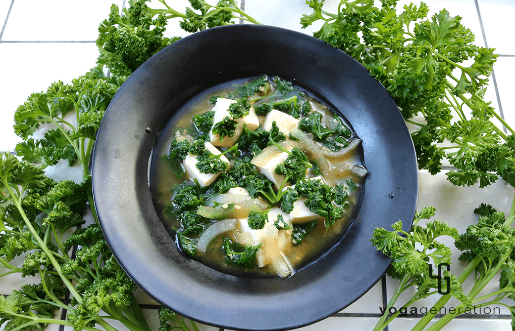 温かいお椀を手にした時の幸せ感は、なんとも言えませんね。味噌のコク、パセリやEVオリーブオイルの若々しい香りが鼻腔をくすぐる感覚がたまりません!
