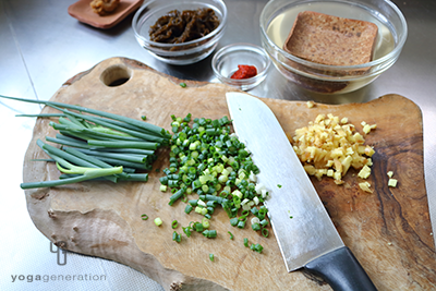 仕上げの青ネギはたっぷりと!お肉がなくても、干しシイタケと高野豆腐からいいお出汁が出て、さらに食感もしっかりします。腹持ちも良いのでダイエットされている方にもオススメです。