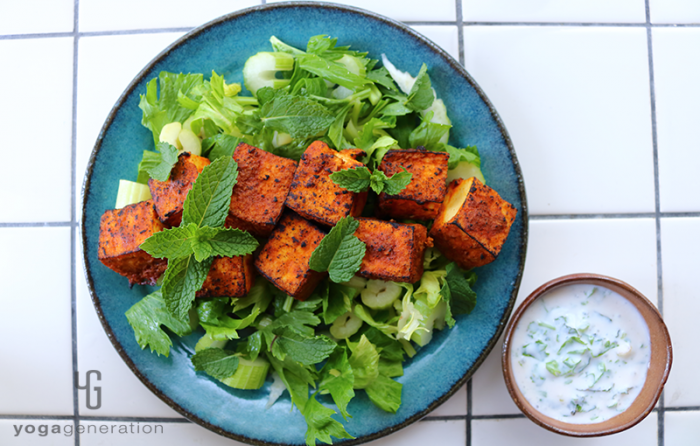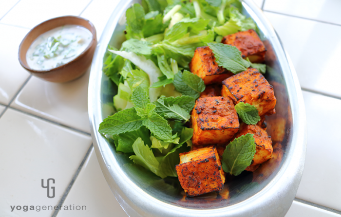 エキゾチックな味わいですが、この味わいをまとめているのが日本が誇る発酵調味料のお醤油。馴染みのある厚揚げに、これまた馴染みのあるお醤油をプラス!そうすることで、異国風でありつつもどこか懐かしい味わいに仕上がります。ミントたっぷりのヨーグルト・ソースを添えて、旅気分なごはんを楽しみましょう♪